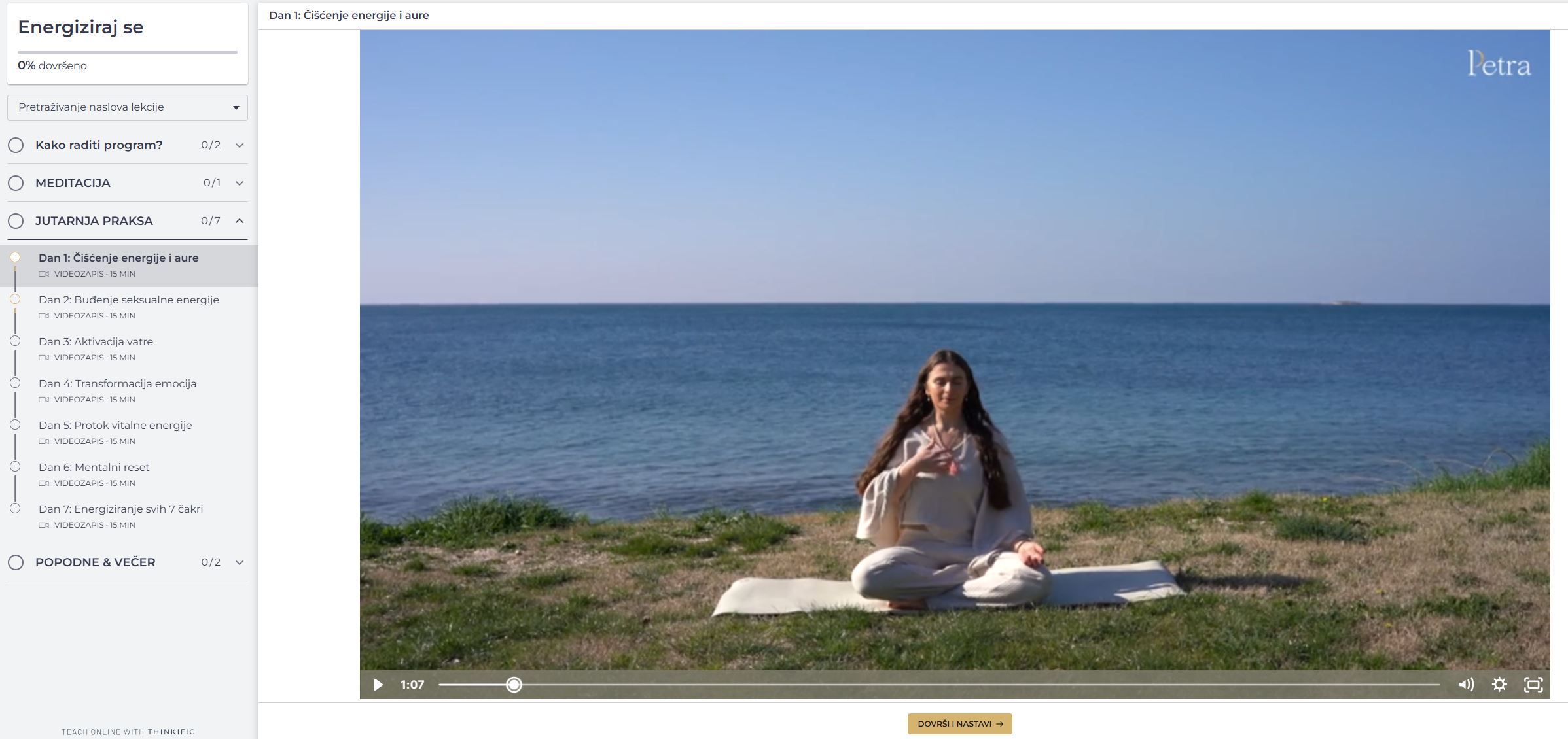 Ne, ujutro ti se otključava nova video lakecija (Jutarnja praksa) za taj dan koju ti možeš napraviti kada god imaš vremena u danu, i prvi dan ti se otključavaju lekcije Popodnevni energetski boost i Večernji energetski reset koje možeš raditi u bilo kojem trenutku u danu. Program je ovako koncipiran kako bi imala najveće promjene, ujutro je važno pokrenuti našu energiju, popodne često osjetim pad energije stoga će ti ovaj kratki boost pomoći podići razinu energije, a večernji program je usmjeren na aktivaranje YIN energije (parasimatičkog živčanog sustava) kako bi se opustila i kvalitetnije napunila energijom tokom sna.